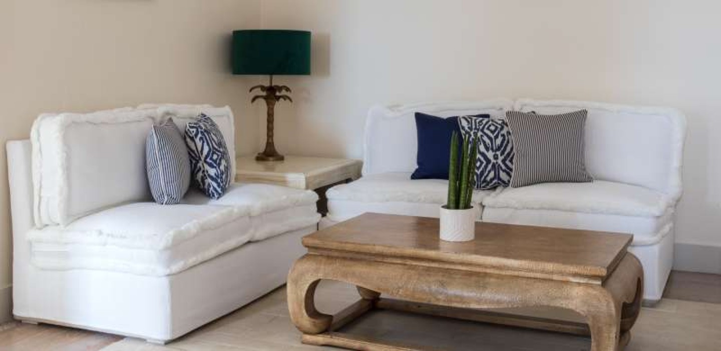 Interiors are light and cool with just a hint of retro charm in detailing.