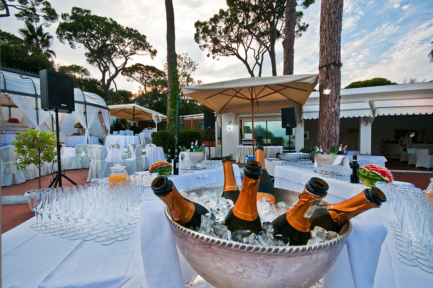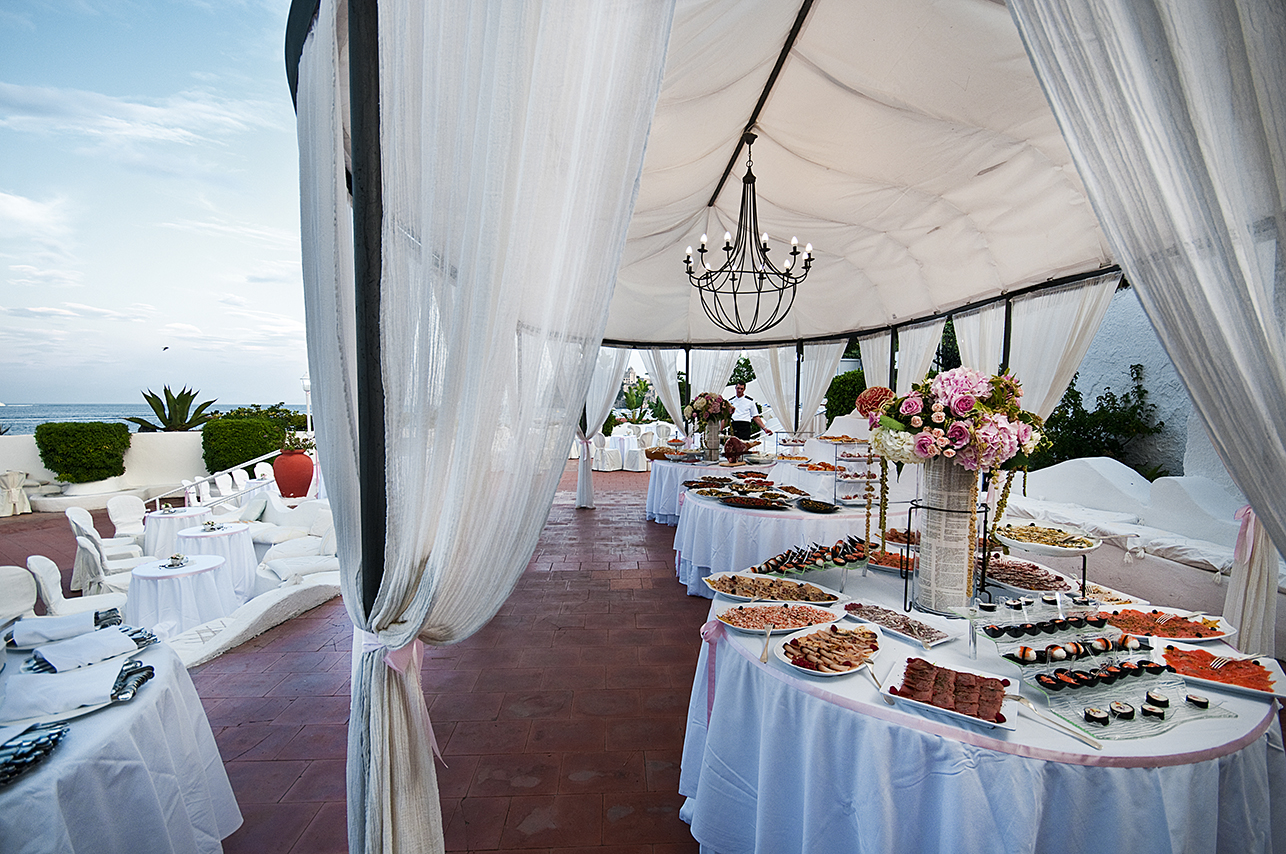 The wedding reception can be held on the largest Terrace with stunning views over the sea where the bright lights of the Bay will create the magical atmosphere for your event! After the dinner the party will continue in the Dancing Club facing the sea for a joyful entertainment under the stars.
